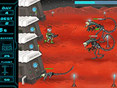 Alien Defense একটি গেম যেখানে আপনাকে এলিয়েনদের মোকাবিলা করতে হবে এবং তাদের আক্রমণ তরঙ্গ থামাতে হবে যাতে ঘাঁটি অক্ষত থাকে। তারা অনুপ্রবেশকারীদের ধ্বংস করতে চায়, কিন্তু একজন স্পেস মেরিন হিসেবে আপনি তাদের দেখিয়ে দেবেন যে এটা একটা খারাপ ধারণা। লেন পরিবর্তন করুন এবং এলিয়েনদের মারার জন্য টারেট বসান, ব্যারিকেড স্থাপন করুন এবং যখন আপনার পর্যাপ্ত অর্থ হবে তখন চরিত্রকে আপগ্রেড করুন।
