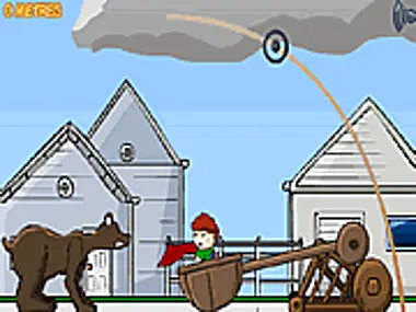 Kid is trying to escape the bear. Launch him as far as you can.
