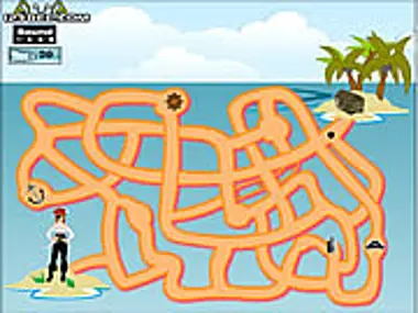 Help the treasure hunter to navigate through the maze. Collect objects in the path that will help you to get the treasure.